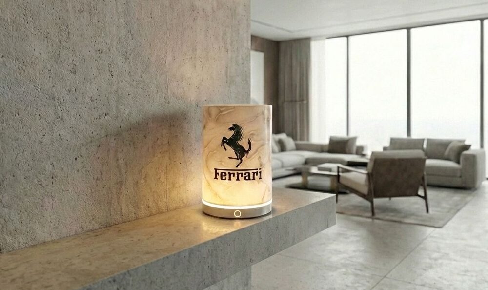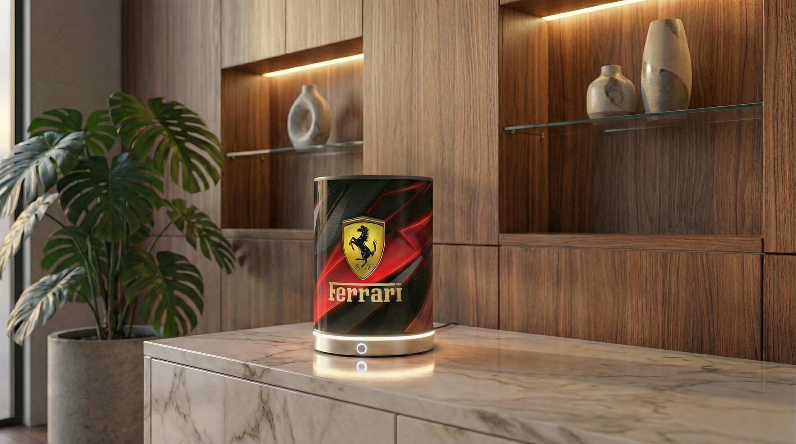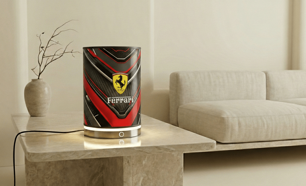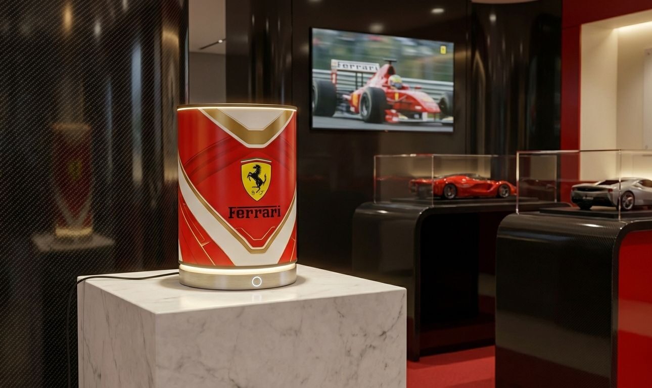 Lámpara Ferrari artesanal con 8 diseños para coleccionar. Exclusiva lámpara de edición limitada con altavoz Pioneer de 100W.