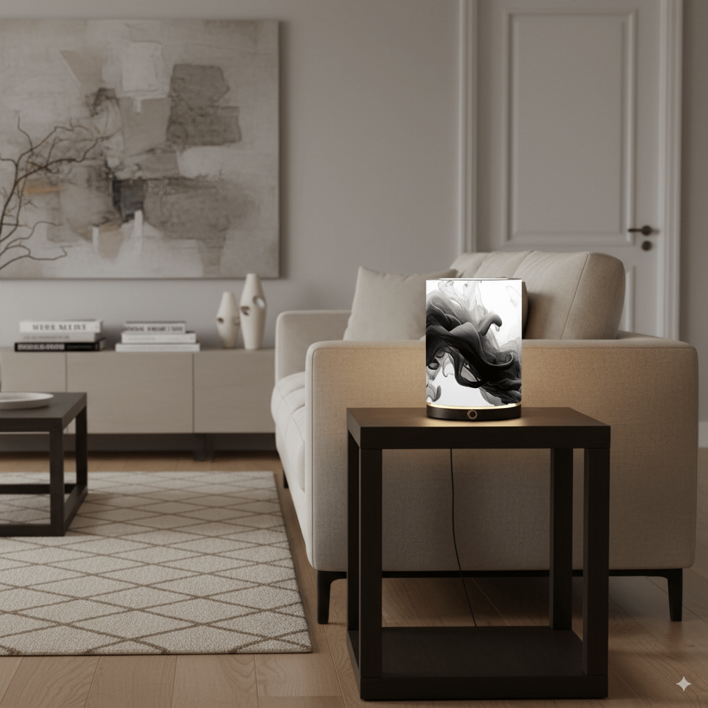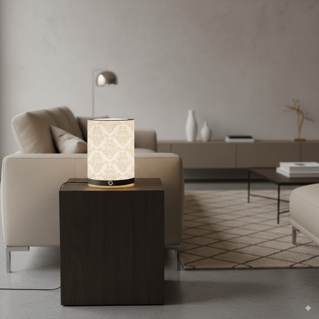 – Impresión en Papel HP Plastificado Premium. La pantalla de la lámpara de mesita de noche, está hecha de papel HP plastificado premium de 250g/m², que garantiza una calidad duradera y una apariencia visualmente atractiva.