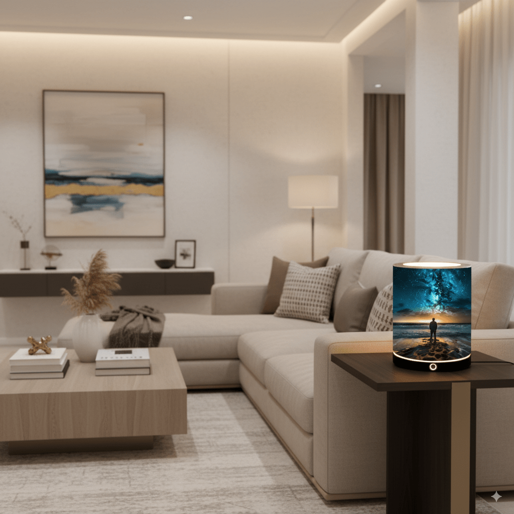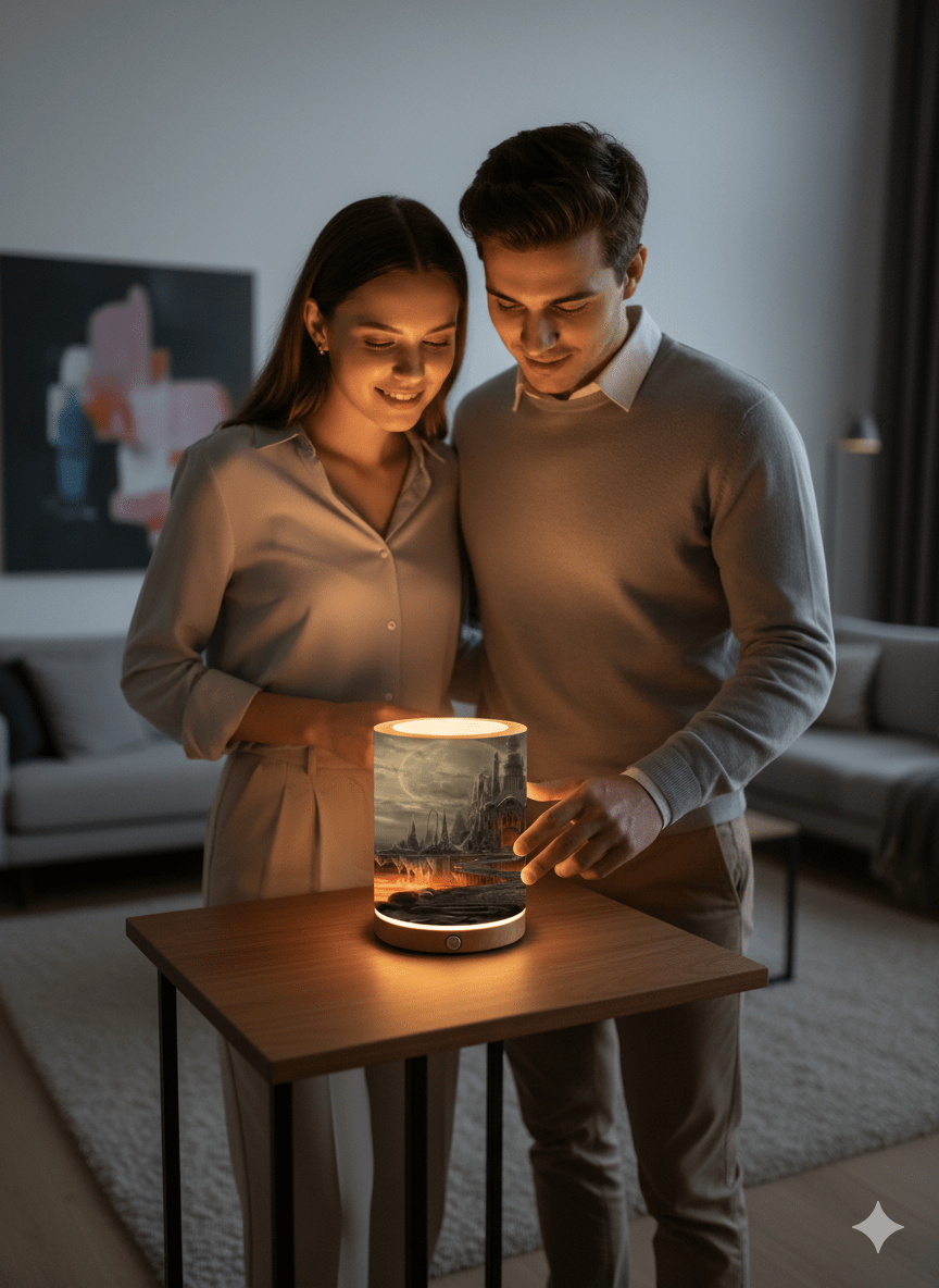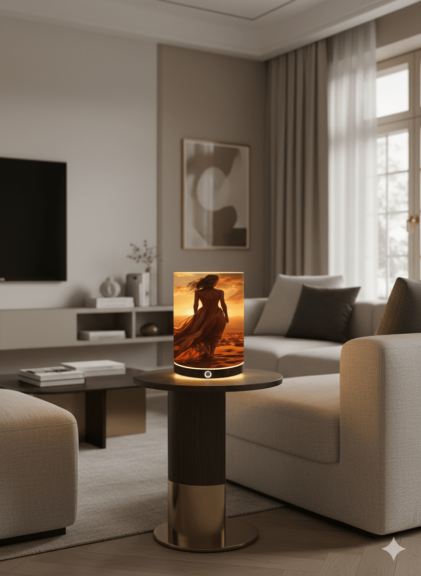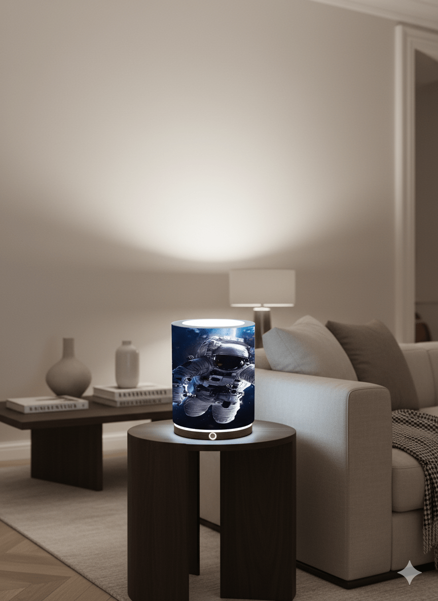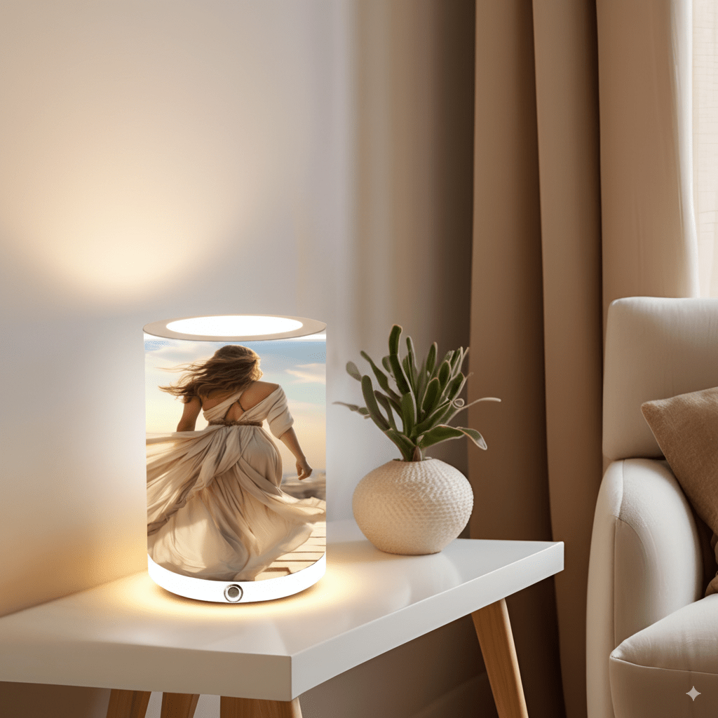 – Impresión en Papel HP Plastificado Premium: La pantalla de la lámpara de mesita de noche, está hecha de papel HP plastificado premium de 250g/m², que garantiza una calidad duradera y una apariencia visualmente atractiva.